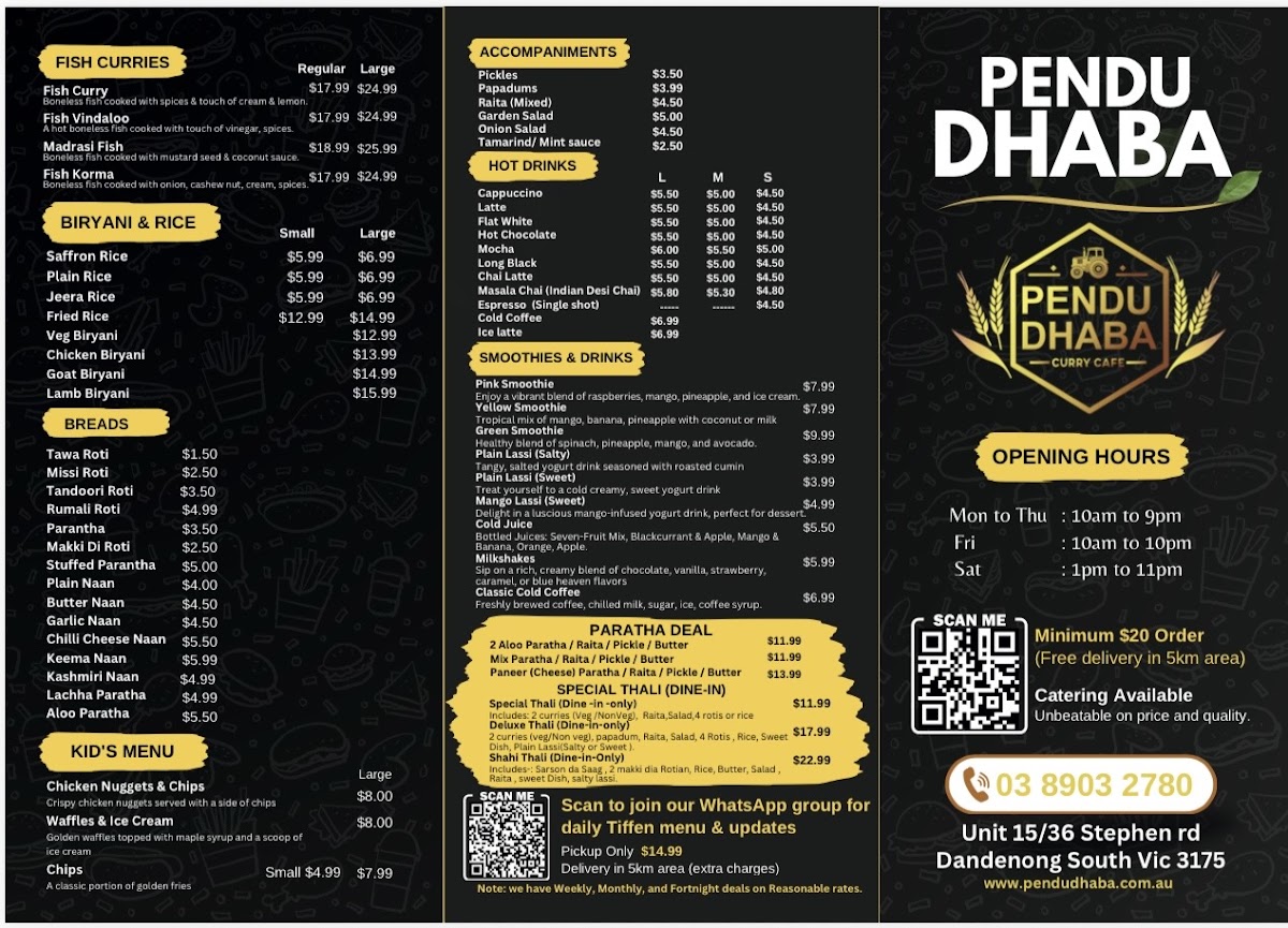 Pendu Dhaba Curry Cafe in Dandenong South is a heartfelt celebration of authentic Punjabi cuisine served with genuine warmth. This family-run gem offers rich, creamy daal makhani and traditional rotis that transport you straight to the vibrant streets of Punjab. The menu, though simple, is packed with bold flavors and generous portions that delight the palate. Each dish reflects deep culinary pride, prepared fresh with love and care. Beyond the food, the welcoming staff, especially Charan’s attentive service, creates a homely dining experience where every guest feels valued. Whether you’re craving hearty curries or exploring Indian-Australian fusion, this café excels in quality and hospitality. With reasonable prices and a cozy atmosphere, Pendu Dhaba Curry Cafe is a must-visit for anyone seeking authentic, flavorful Indian fare in Melbourne. The menu’s authenticity and heartfelt preparation leave a lasting impression that invites you to return time and again.